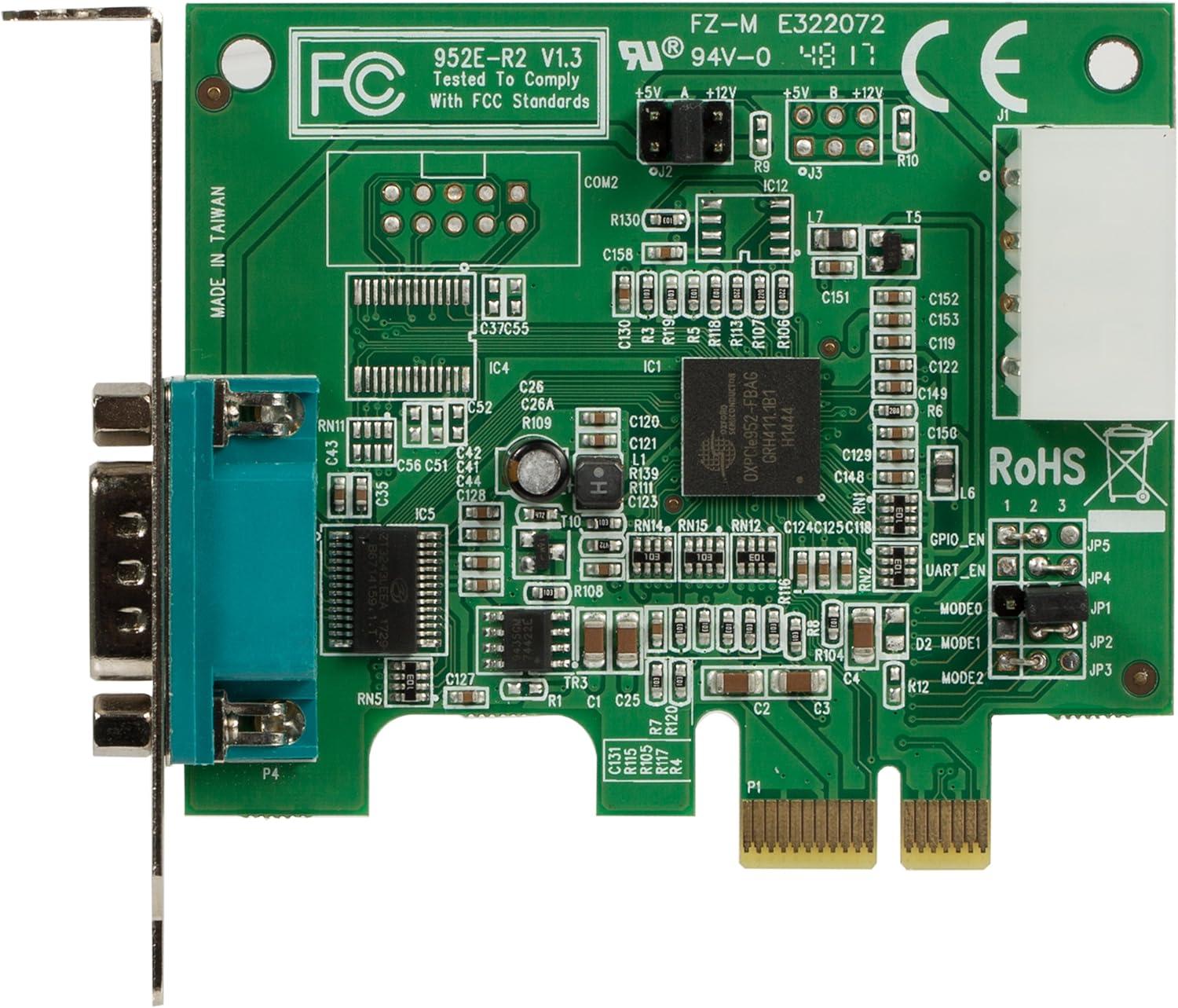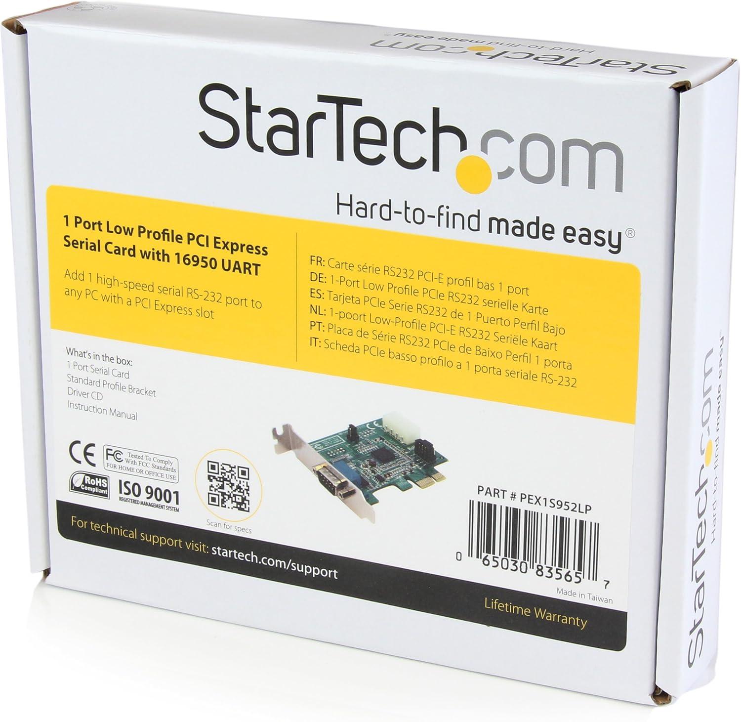 StarTech.com 1 Port Low Profile Native PCI Express RS232 Serial Card with 16950 UART – PCIe Serial Card – 1 Port LP RS232 Card (PEX1S952LP)(1P Low Profile)