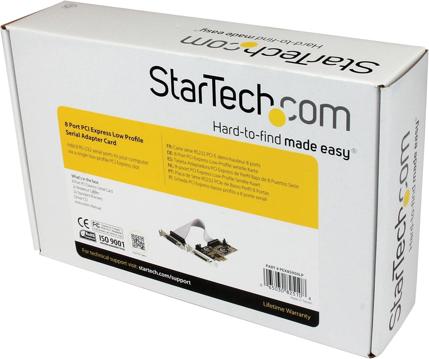 StarTech.com 1 Port Low Profile Native PCI Express RS232 Serial Card with 16950 UART – PCIe Serial Card – 1 Port LP RS232 Card (PEX1S952LP)(8 port – Low Profile)