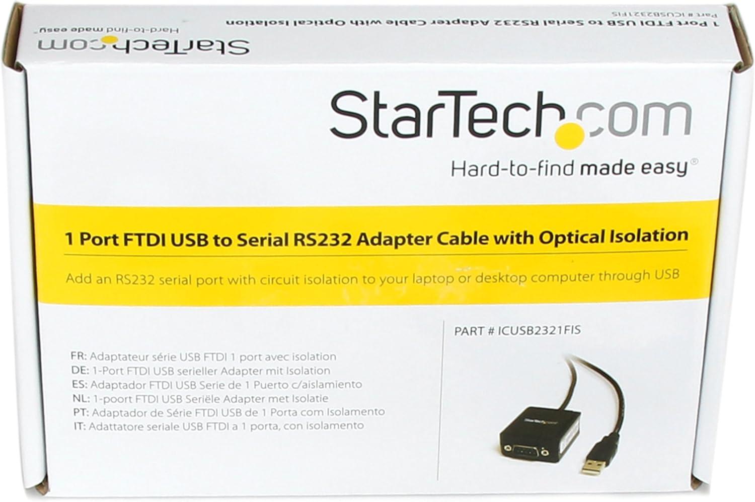 StarTech 8.3ft (2.5m) 1-Port FTDI USB to Serial RS232 Adapter Cable with Optical Isolation, USB to RS232 Adapter – TAA(6ft)