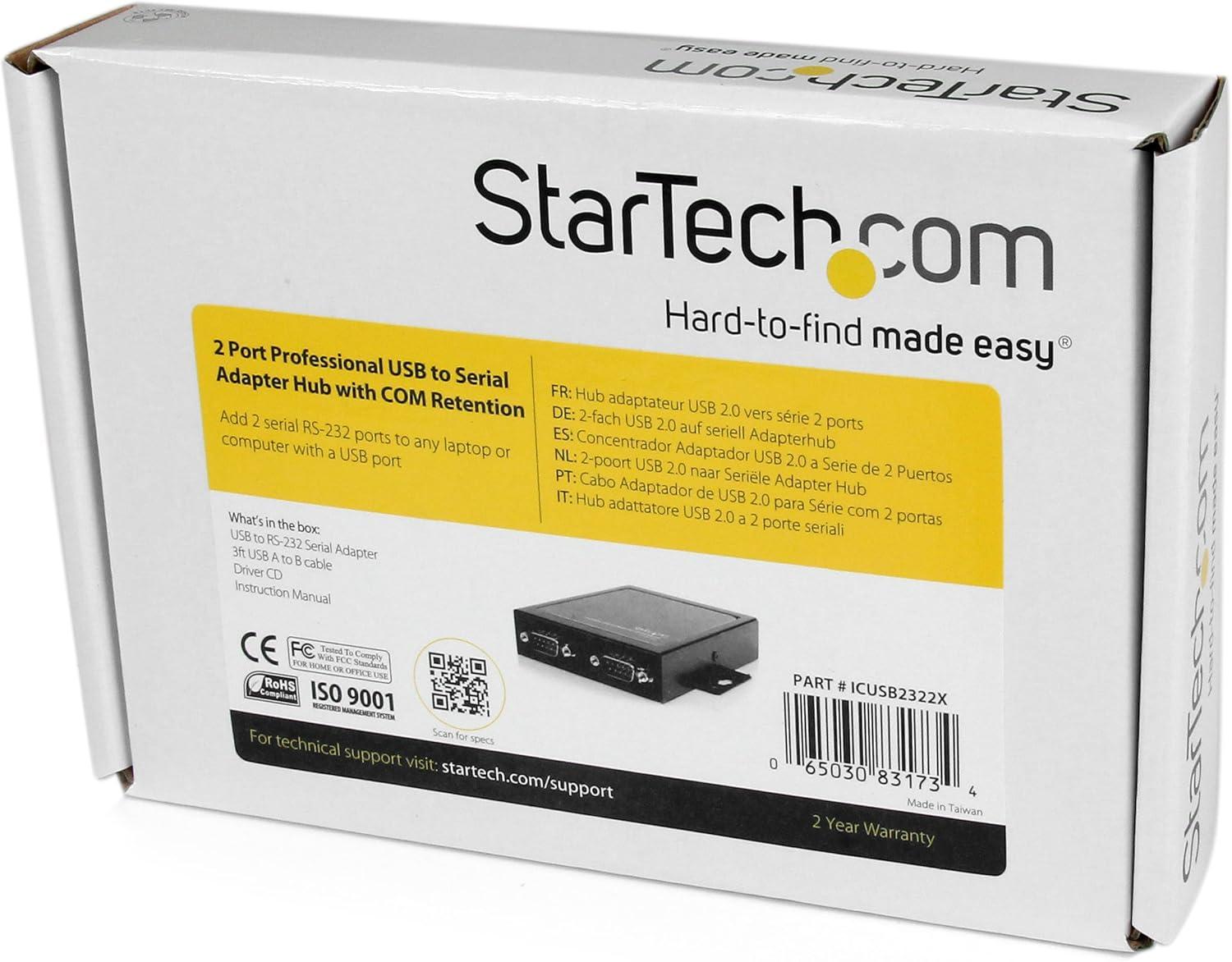 StarTech.com USB to Serial Adapter Hub – 4 Port – Wall Mount – COM Port Retention – Texas Instruments – USB to RS232 Adapter (ICUSB2324X), Black(USB 2.0)